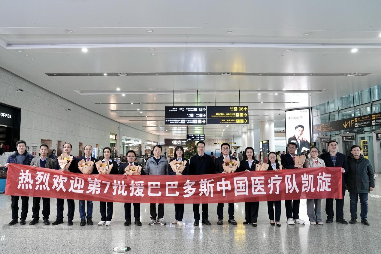 12月29日下午,市卫生健康委副主任邢雅翕赴重庆江北机场迎接圆满完成任务的第7批援巴巴多斯中国医疗队,并举行简短隆重的欢迎仪式。各派员单位领导到机场迎接。