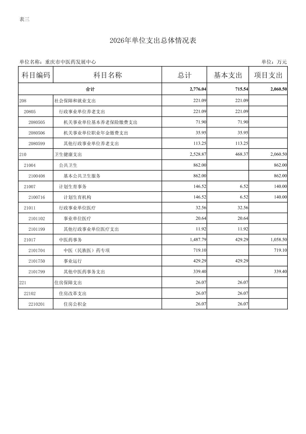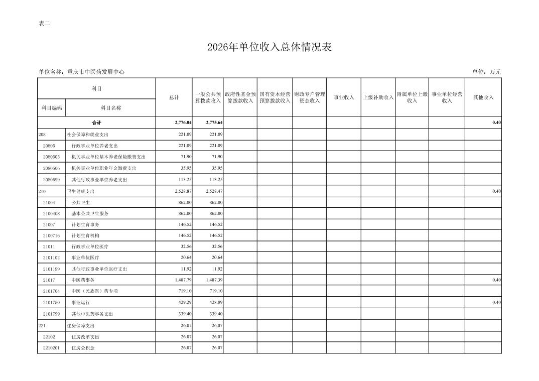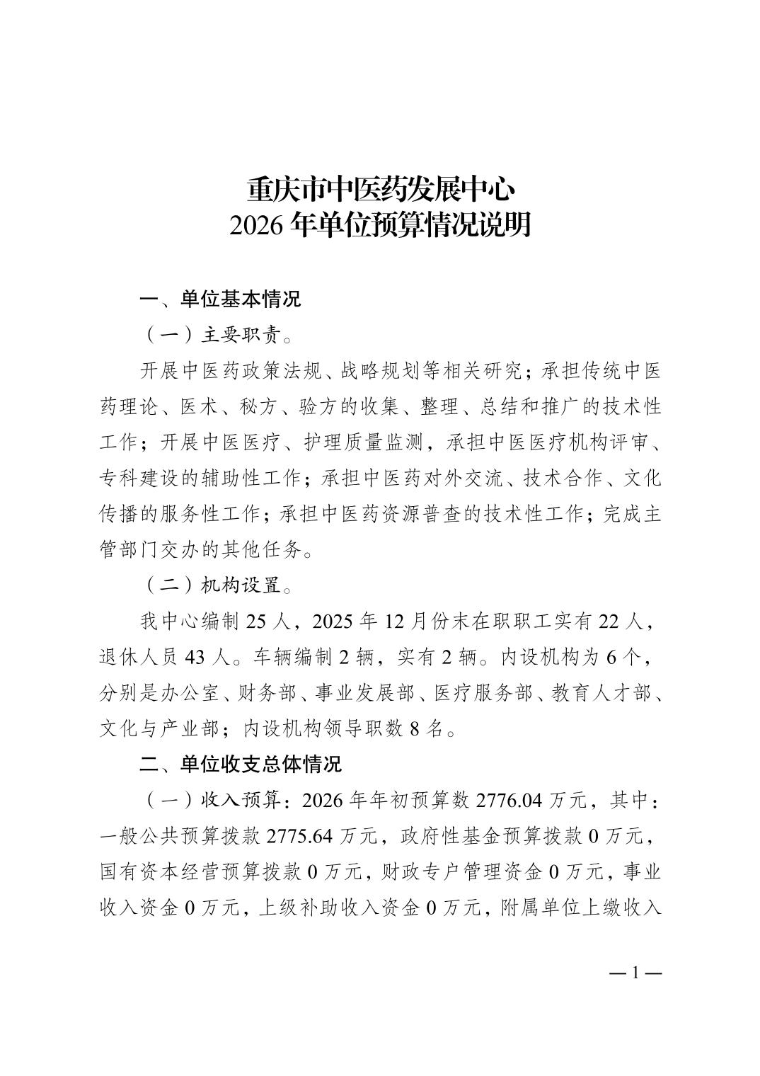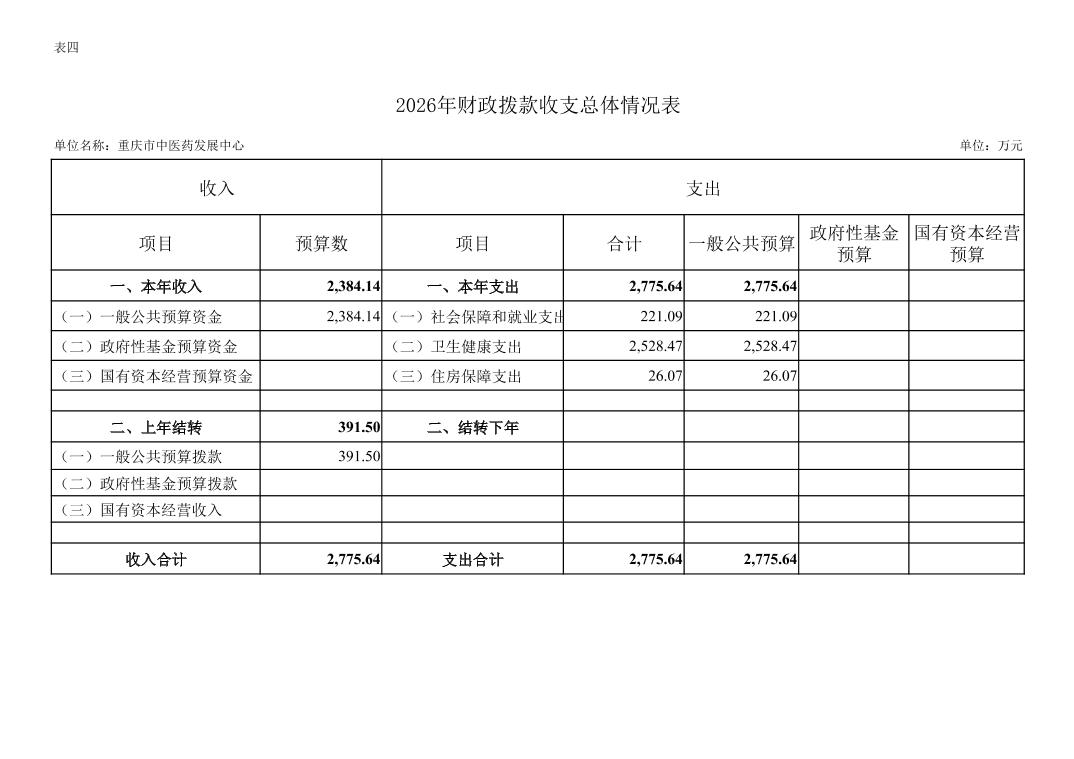 重庆市中医药发展中心2026年单位预算情况说明