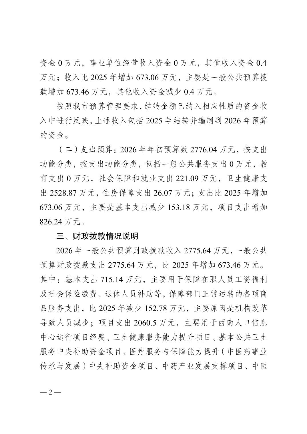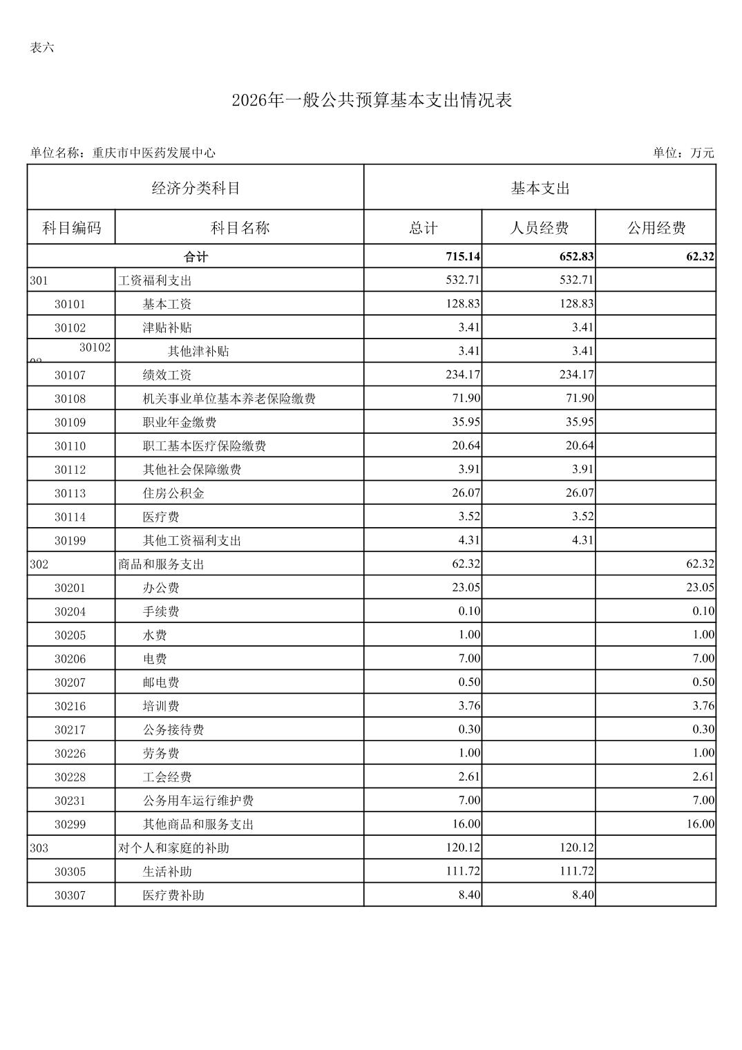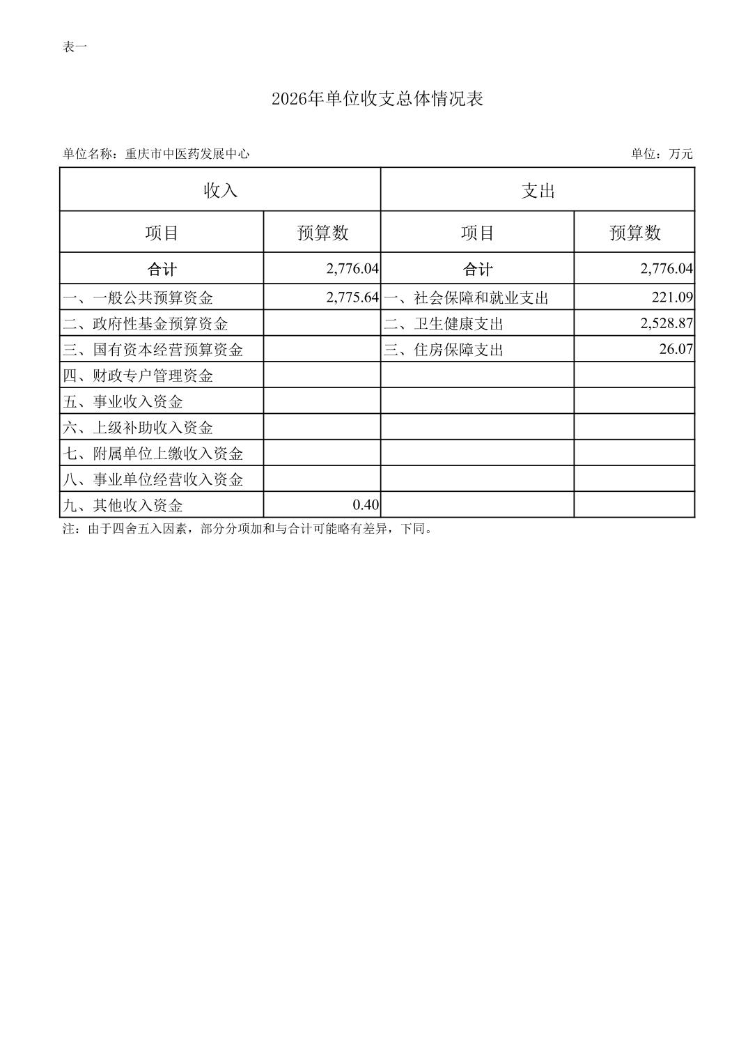重庆市中医药发展中心2026年单位预算情况说明