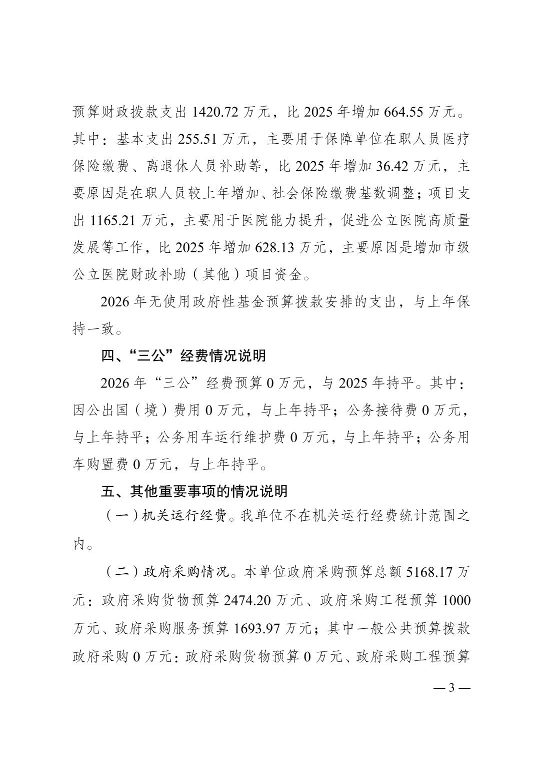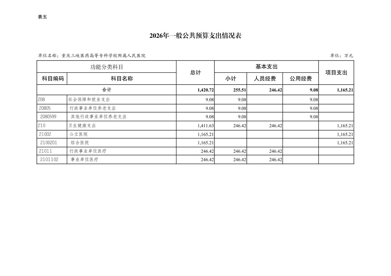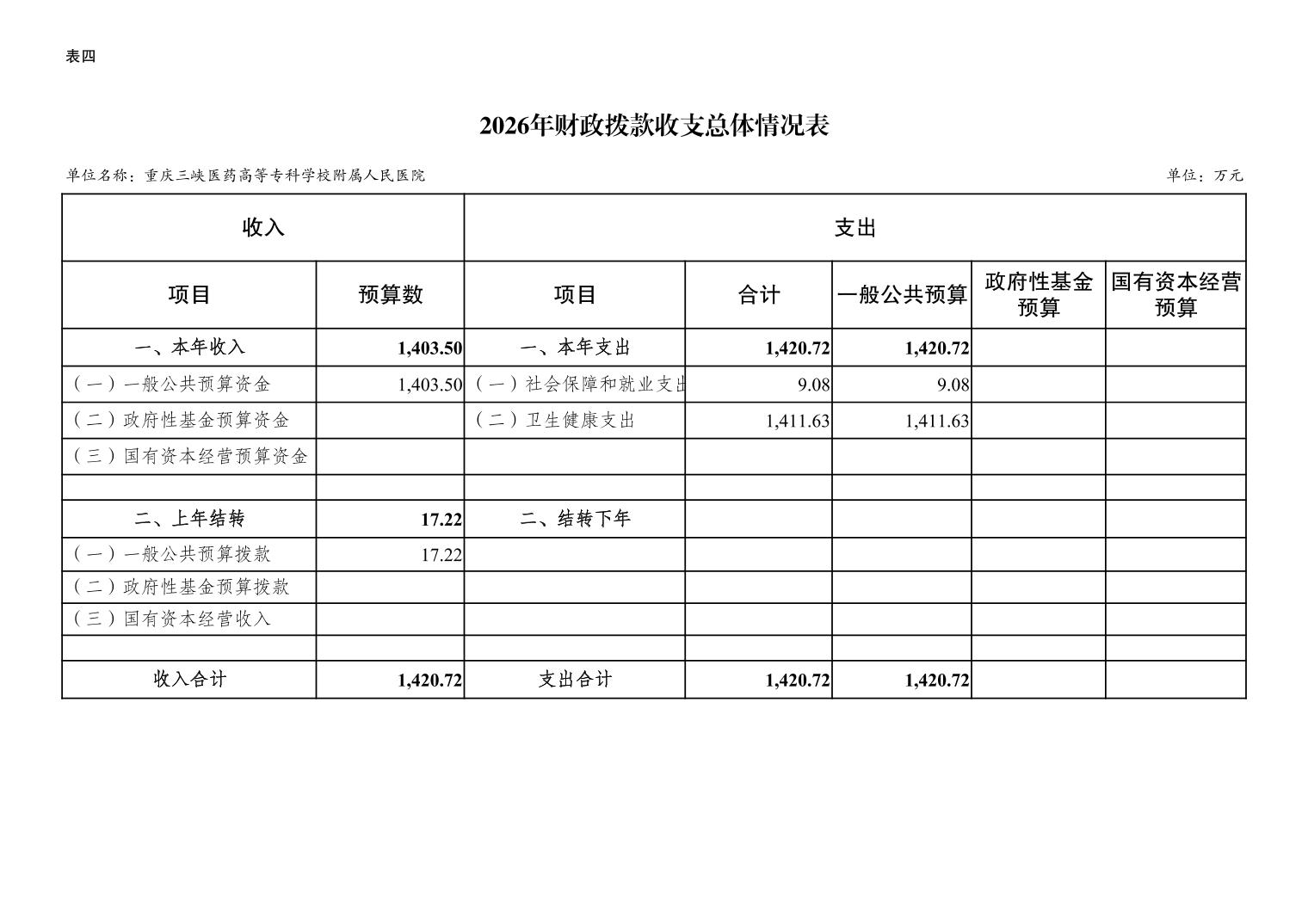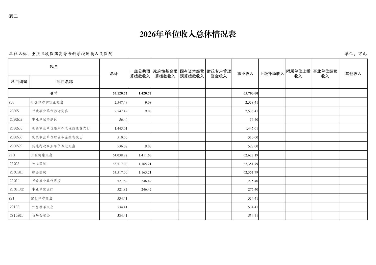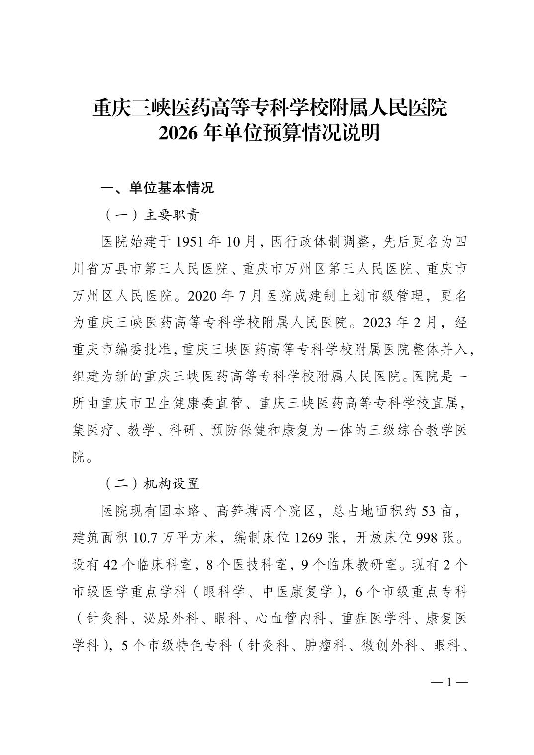 重庆三峡医药高等专科学校附属人民医院2026年单位预算情况说明