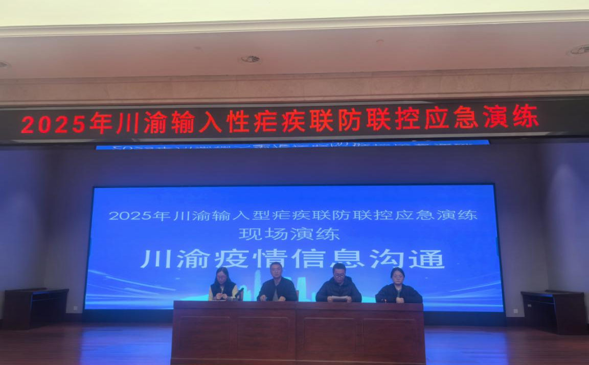 2025年12月2日,重庆市疾控局、四川省疾控局联合举办了2025年输入性疟疾疫情联防联控应急演练。重庆市疾控局党组成员、副局长龙江出席并讲话。川渝两地疾控局相关处室,中国疾控中心、上海市、四川省、重庆市疾控中心专家做了点评指导,川渝两地疾控机构相关人员参加演练。