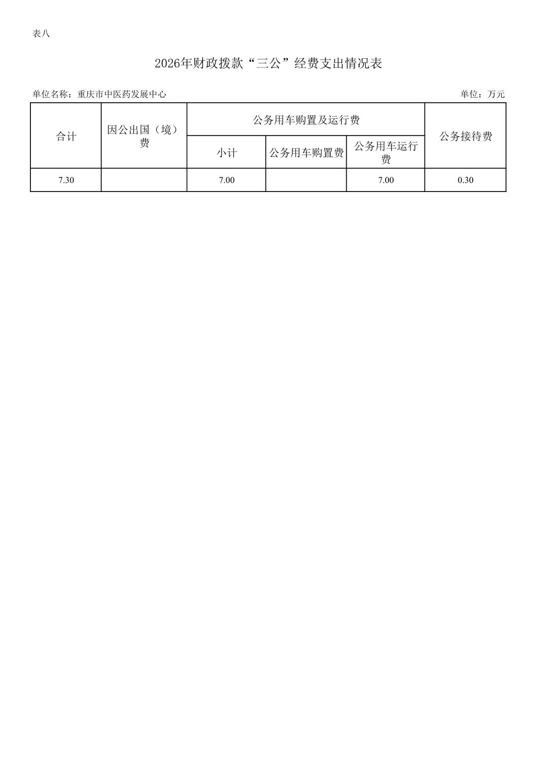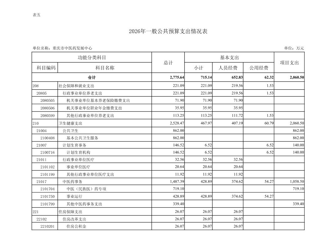 重庆市中医药发展中心2026年单位预算情况说明