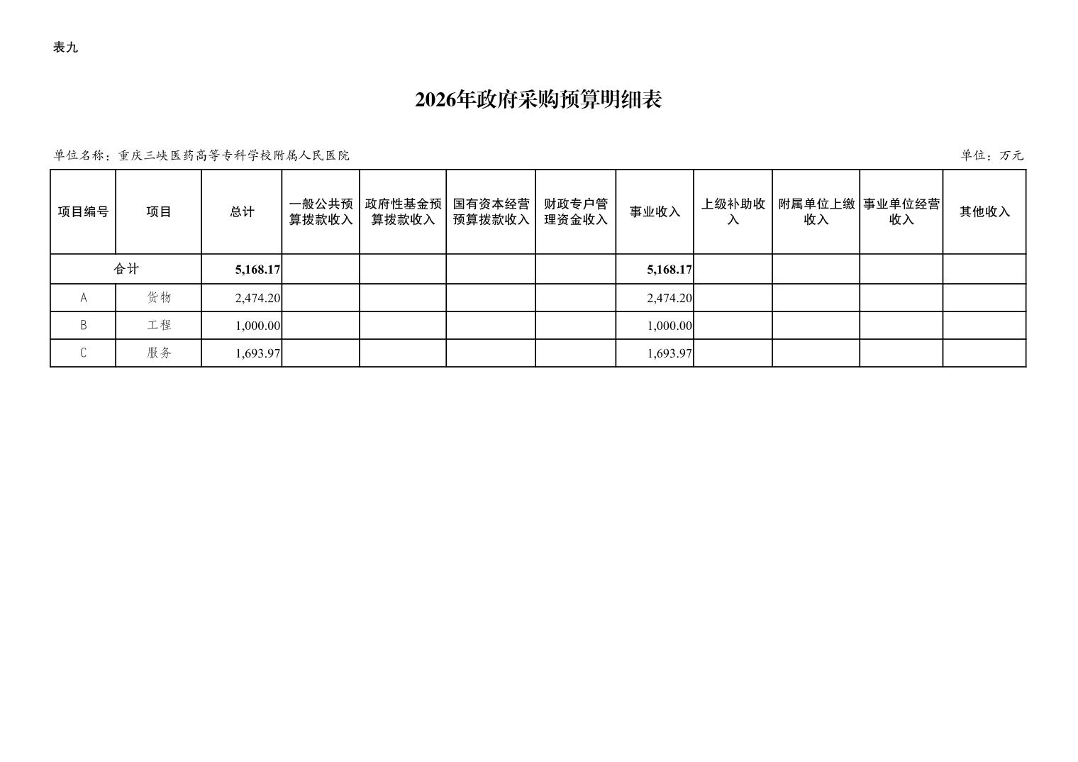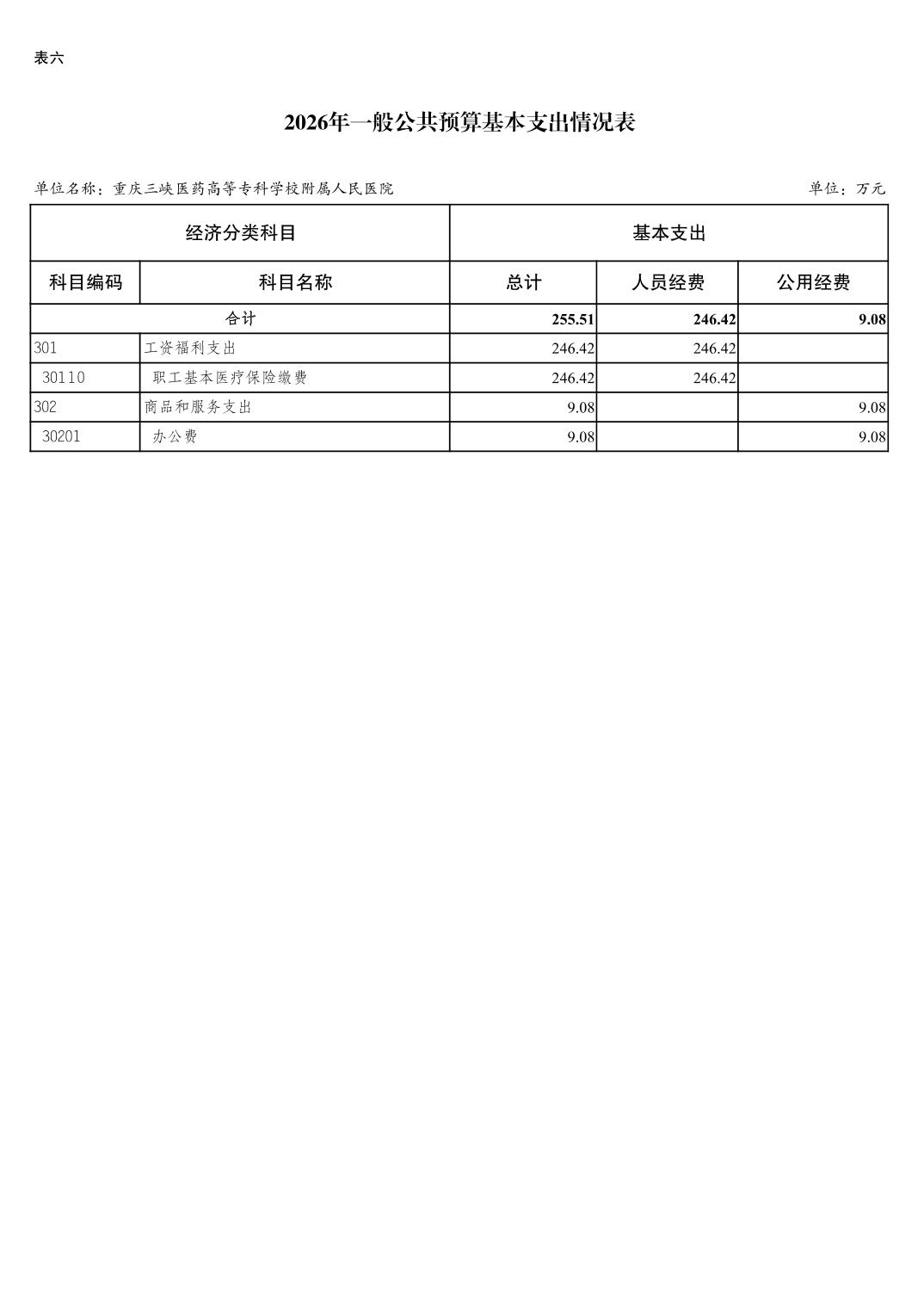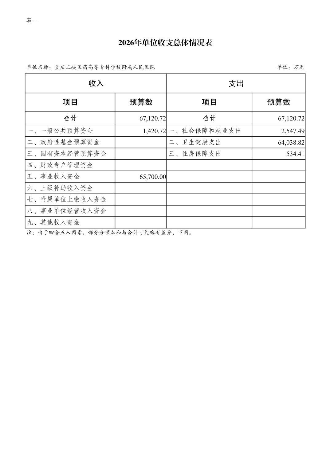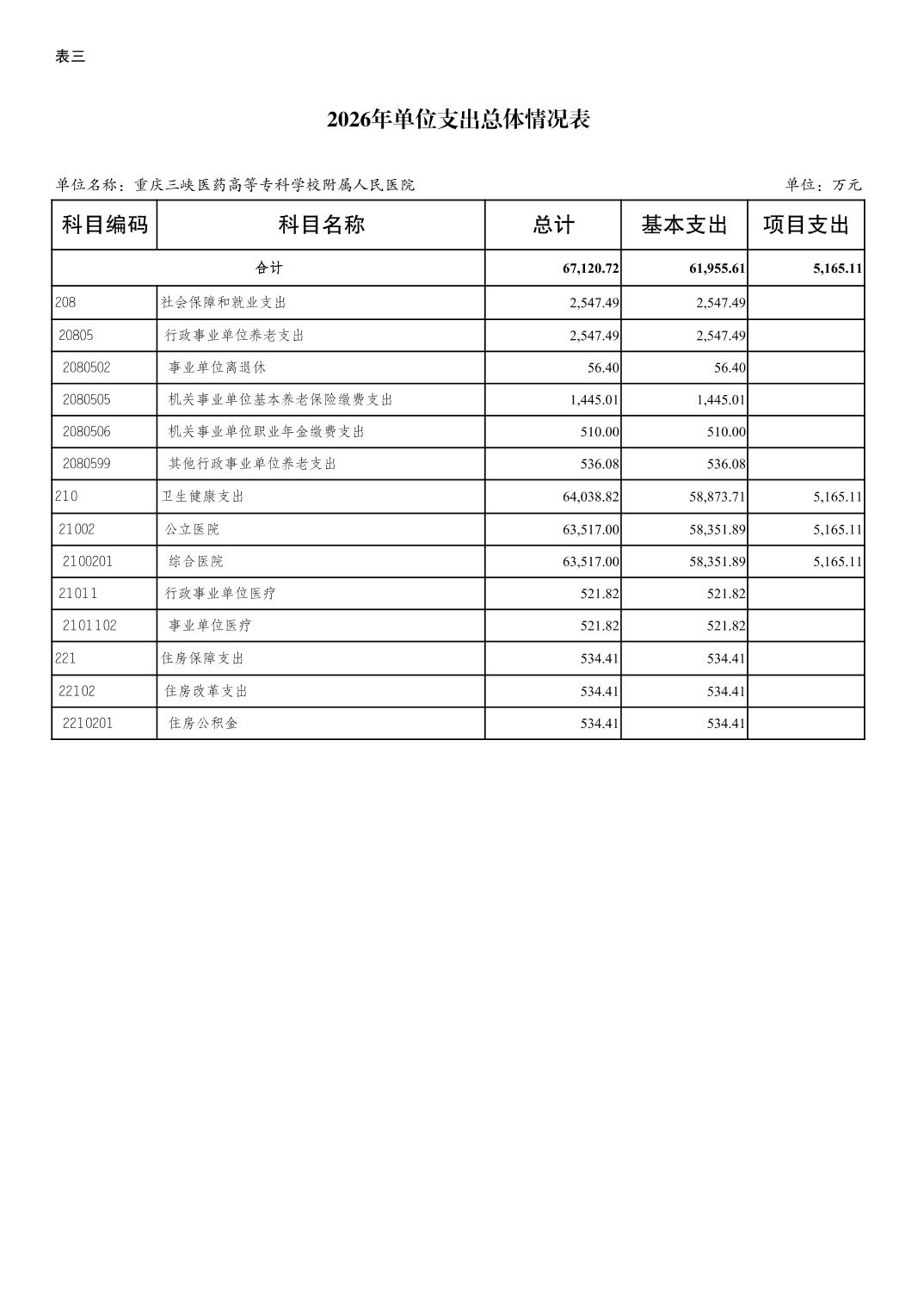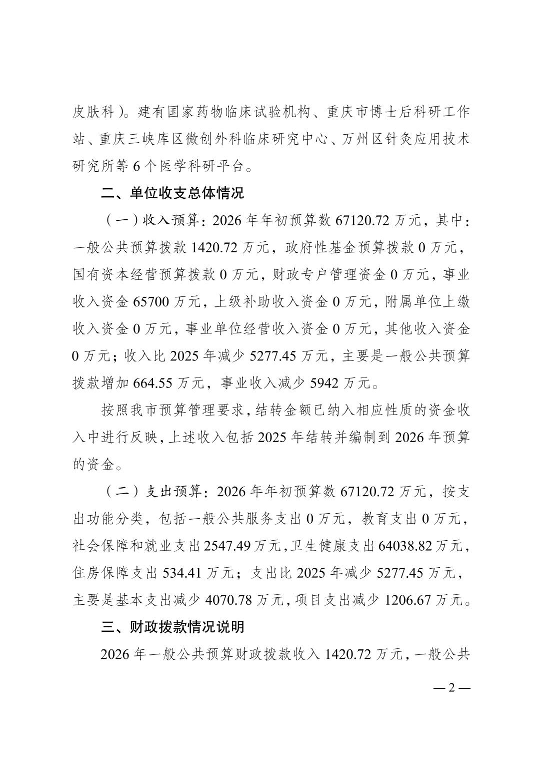 重庆三峡医药高等专科学校附属人民医院2026年单位预算情况说明