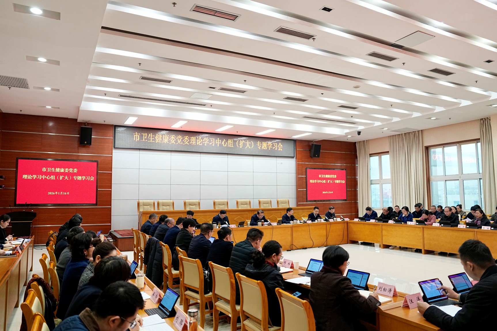 1月16日,市卫生健康委党委书记、主任张维斌主持召开委党委理论学习中心组集体研讨会。会议紧扣民主生活会主题,专题学习习近平总书记关于党的自我革命的重要思想以及关于加强党的纪律建设、作风建设的重要论述,认真贯彻市委六届八次全会精神,研究部署卫生健康领域贯彻落实举措。